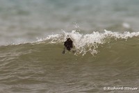 Riding the surf.