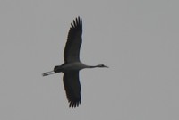 One of two Common Cranes flying over heading to their evening roost at Hickling/Horsey.