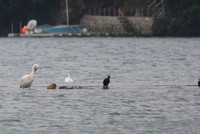 Penpol, near Devoran. At rest on a sand bank in the middle of the creek with 2 cormorants & a Swan.