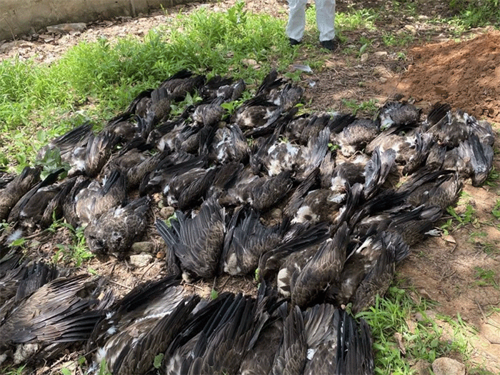 In the Kenya–Tanzania border region, authorities say at least 34 vultures died after feeding on a carcass laced with poison. The bait was reportedly set in an effort to kill lions following a predation incident, but vultures — which feed on carcasses almost immediately after predators depart — became unintended victims.